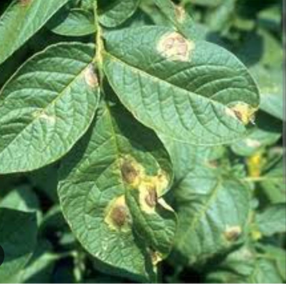 उन्होंने कहा कि जिसमें झुलसा रोग से बचा जा सकता है। आलू की पत्तियों पर छोटी-छोटी बिंदी के रूप में बहुत सारे धब्बे दिखाई पड़ते हैं, जो अलटरनेरिया की वजह से आता है। यह बिंदिया पोषक तत्व की कमी को जैसे भी दिखाई देते हैं। जिसको मैनी लीफ कॉम्प्लेक्स डिजीज कहते हैं l इसका उपाय क्लोरोथेलोनील नाम की दवा ढाई ग्राम प्रति लीटर पानी की दर से घोल बनाएं जिसमें मल्टी माइक्रोन्यूट्रिएंट नाम से पैकेट बाजार में उपलब्ध होते है। जिसमें (आयरन, कॉपर, जिंक, कैल्शियम, मलिबडनम, बोरान, क्लोरीन) आदि तत्व होते हैं। जो एक किलोग्राम प्रति एकड़ के लिए पर्याप्त होता है। यदि एक एकड़ में 15 लीटर की एक टंकी है आठ से 10 टंकी में पूर्ण हो जाता है 100 ग्राम से लेकर के 120 ग्राम एक टंकी में डालना चाहिए जिससे काफी हद तक उसे रोग का कंट्रोल कर लेते हैं।