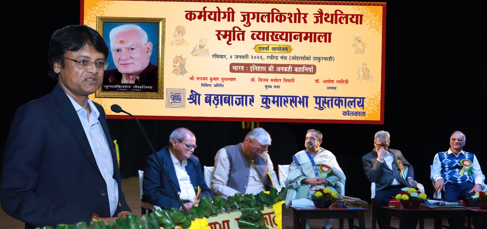 उपरोक्त बातें माखनलाल चतुर्वेदी राष्ट्रीय पत्रकारिता एवं संचार विश्वविद्यालय के कुलपति विजय मनोहर तिवारी ने रविवार को स्थानीय रथीन्द्र मंच में श्री बड़ाबाजार कुमारसभा पुस्तकालय द्वारा आयोजित दसवें कर्मयोगी जुगल किशोर जैथलिया स्मृति व्याख्यानमाला को संबोधित करते हुए कही। “भारत : इतिहास की अनकही कहानियां” विषयक परिचर्चा में मुख्य वक्ता के रूप में संबोधित करते हुए उन्होंने कहा कि भारत केवल भूखंड नहीं बल्कि एक जीवंत सभ्यता यात्रा है जिसकी जड़ें प्राचीन सम्राज्यों एवं दार्शनिक परंपराओं में गहराई से जुड़ी है।