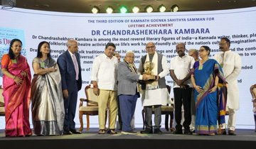 भारत के उपराष्ट्रपति श्री सी. पी. राधाकृष्णन आज चेन्नई में रामनाथ गोयनका साहित्य सम्मान समारोह में शामिल हुए। यह इन पुरस्कारों का तीसरा संस्करण है। उपराष्ट्रपति ने  रामनाथ गोयनका साहित्य सम्मान साहित्य, विचारों और निडर अभिव्यक्ति की स्थायी शक्ति का उत्सव मनाता है।  राम नाथ गोयनका को श्रद्धांजलि देते हुए उपराष्ट्रपति ने उन्हें निडर पत्रकारिता की महान हस्ती बताया, जिन्होंने ईमानदारी, बौद्धिक साहस और लोकतांत्रिक मूल्यों को बनाए रखा।उपराष्ट्रपति ने उन्हें ‘भारतीय लोकतंत्र का विवेक रक्षक’ कहा, जिनकी विरासत पीढ़ियों को प्रेरित करती रहती है।