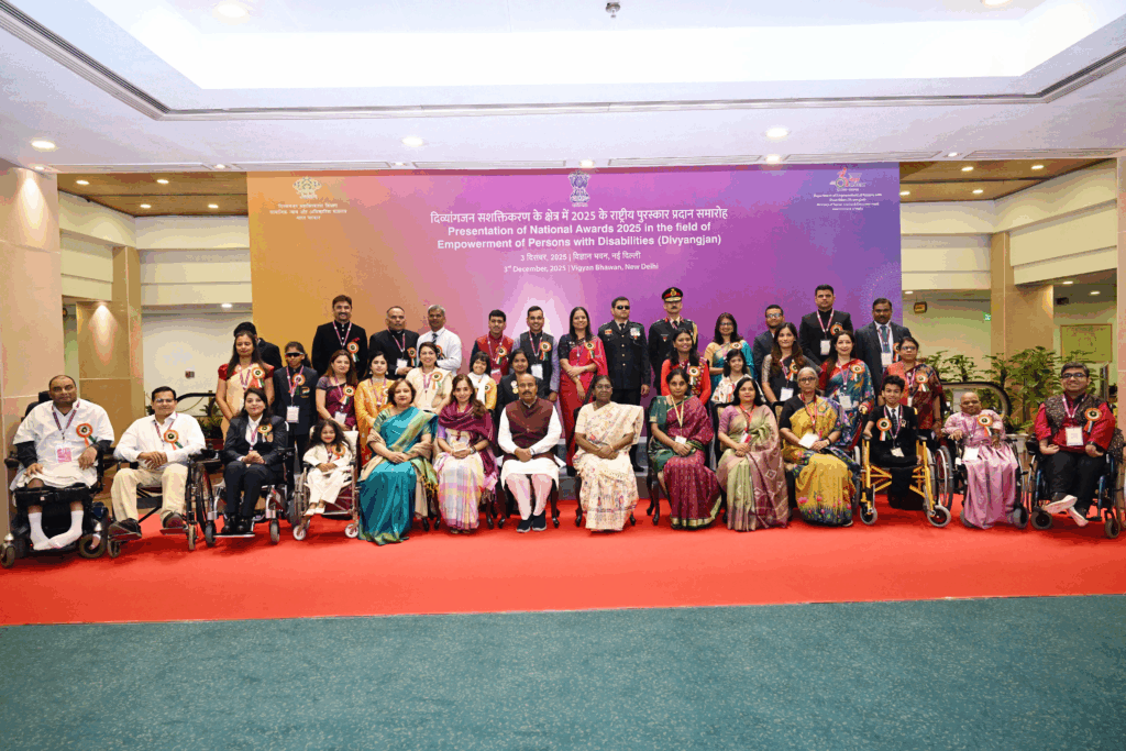 राष्ट्रपति श्रीमती द्रौपदी मुर्मु ने आज 3 दिसंबर को अंतरराष्ट्रीय दिव्यांगजन दिवस के अवसर पर नई दिल्ली में वर्ष 2025 के लिए राष्ट्रीय दिव्यांगजन सशक्तिकरण पुरस्कार प्रदान किए।