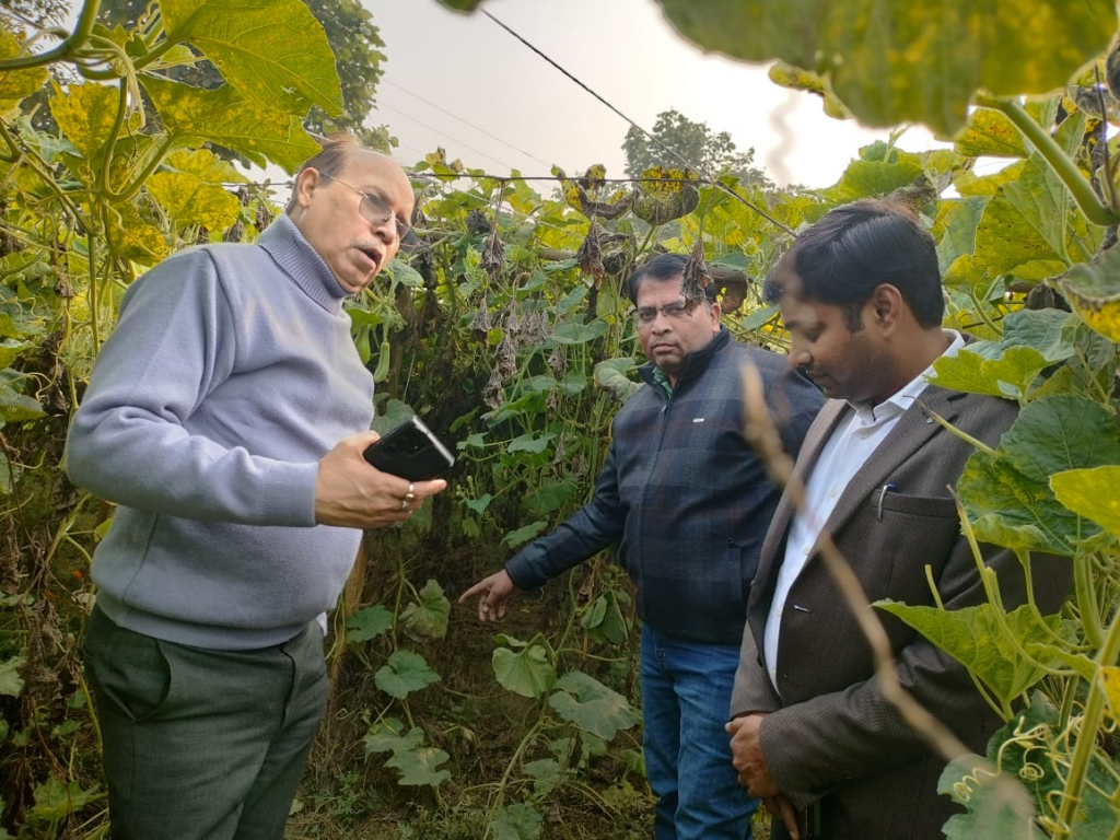 इसके उपरांत सिरसागंज के नगला लाले मे प्रगतिशील कृषक लोकेश कुमार के खेत पर मटका विधि से मचान पर उगाई गयी लौकी की फसल का निरीक्षण किया। इसके साथ ही कृषि विभाग द्वारा अनुदान पर लगायी गयी सोलर पंप का सत्यापन किया।