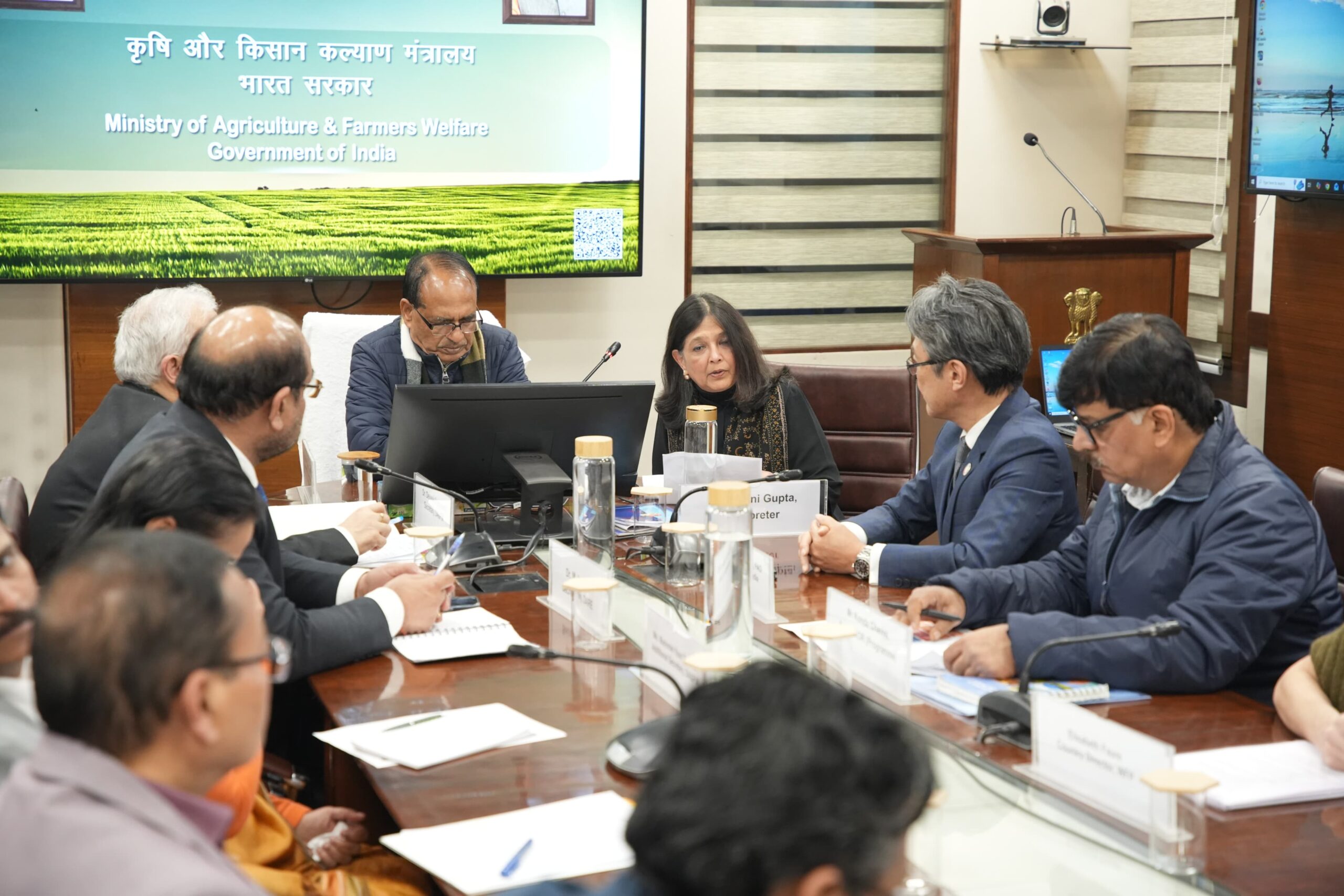 कृषि भवन में आज प्रमुख अंतरराष्ट्रीय और बहुपक्षीय विकास साझेदारों के साथ उच्चस्तरीय बैठक के बाद मीडिया से बातचीत में शिवराज सिंह ने बताया कि बजट पूर्व बैठकों के क्रम में अंतरराष्ट्रीय संस्थाओं के प्रतिनिधियों से सीधा संवाद किया जा रहा है। उन्होंने कहा कि भारत की कृषि यात्रा खाद्य-अभाव से वैश्विक खाद्य आपूर्ति में महत्वपूर्ण योगदानकर्ता बनने तक पहुंची है और प्रधानमंत्री नरेन्द्र मोदी के नेतृत्व में आज देश कई प्रमुख कृषि उत्पादों का निर्यातक बन चुका है। उन्होंने स्पष्ट किया कि भारत ने खाद्य सुरक्षा सुनिश्चित करने के बाद अब पोषण सुरक्षा और सतत आजीविका को अपनी प्राथमिकता बनाया है।