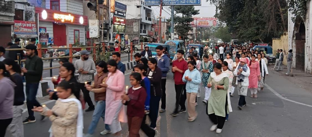 बीएएमएस वर्ष 2022 के छात्र यशपाल की आत्महत्या से आक्रोशित सहपाठी मेडिकल छात्रों ने रविवार शाम कॉलेज परिसर से कैंडल मार्च शुरू किया, जो ऋषिकुल चौक तक गया। छात्रों ने दिवंगत छात्र को श्रद्धांजलि अर्पित करते हुए मामले की निष्पक्ष जांच और जवाबदेही तय करने की मांग की।
