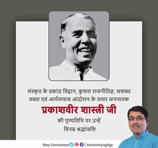 प्रसिद्ध आर्य समाजी नेता प्रकाशवीर शास्त्री