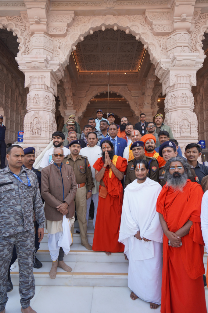 याेग गुरु बाबा रामदेव के राम मंदिर पहुंचने पर श्री रामजन्मभूमि तीर्थ क्षेत्र ट्रस्ट के महामंत्री चम्पत राय ने उनका स्वागत किया। बाबाने यहां श्रीराम लला के दर्शन कर पूजन किया। इसके बाद चम्पत राय ने उन्हें मन्दिर निर्माण कार्य भी दिखायाI बाबा रामदेव ने एक आश्रम में आयोजित योग शिविर में प्रतिभाग कियाI योग शिविर के दौरान उन्होंने राम जन्मभूमि सहित कई महत्वपूर्ण मुद्दों पर अपने विचार रखे। बाबा ने कहा कि अयोध्या हमारा पवित्र तीर्थ है। विदेशी आक्रांताओं ने अयोध्या को ऐतिहासिक रूप से नुकसान पहुंचाया था।बाबा ने प्रयागराज में गंगा स्नान किया। यहां श्रीराम बल्लभा कुंज के महंत रामशंकर दास वेदांती महाराज के जन्मदिवस पर उनका आशीर्वाद लिया। उन्होंने रामत्व, कृष्णत्व, हनुमत्व और शिवत्व की प्रतिष्ठा पर जोर दिया। प्रयागराज में शंकराचार्य अविमुक्तेश्वरानंद से जुड़े विवाद पर भी प्रतिक्रिया दी। बाबा रामदेव ने कहा कि आपसी विवाद से सनातन को अपयश होता है, एकजुट रहना जरूरी है।