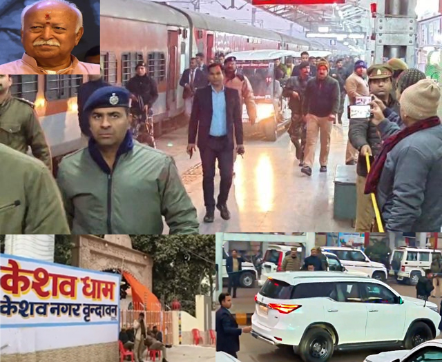 रेलमार्ग से मथुरा पहुंचे आरएसएस प्रमुख डाॅ मोहन भागवत
