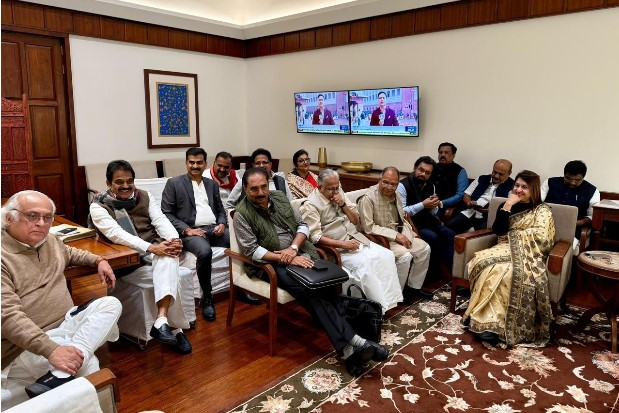 नई दिल्ली, 10 फ़रवरी (हि.स.)। कांग्रेस पार्टी ने मंगलवार को संसद में सरकार को घेरने की रणनीति पर बैठक की जिसमें पार्टी अध्यक्ष मल्लिकार्जुन खरगे और लोकसभा में नेता प्रतिपक्ष राहुल गांधी मौजूद रहे। बैठक में इंडी गठबंधन के फ्लोर लीडर्स ने सत्र के दौरान विपक्ष की भूमिका और रणनीति पर चर्चा की।