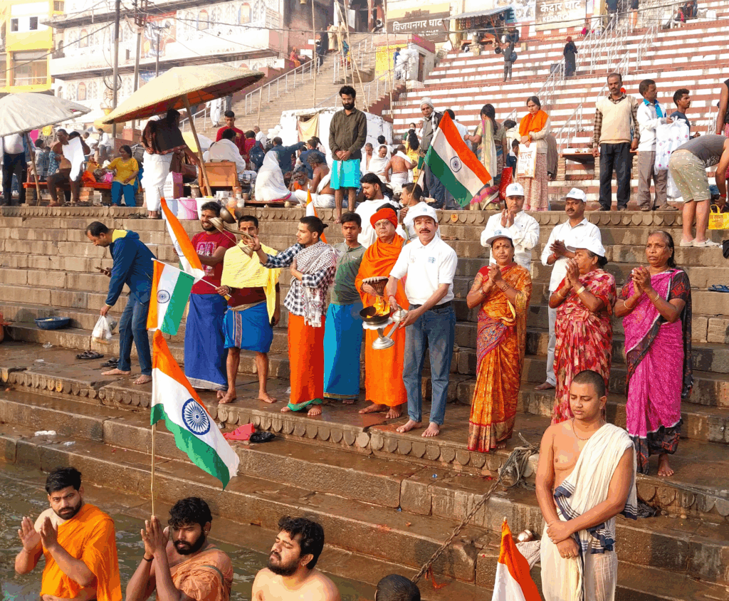आरोग्य भारत की कामना से द्वादश ज्योतिर्लिंग एवं गंगाष्टकम का सामूहिक रूप से पाठ किया गया। राष्ट्रध्वज हाथों में लेकर सभी ने गंगा स्वच्छता और पर्यावरण संरक्षण का संकल्प लिया। नमामि गंगे काशी क्षेत्र के संयोजक व नगर निगम के स्वच्छता ब्रांड एम्बेसडर राजेश शुक्ला ने कहा कि काशी और तमिलनाडु दोनों शिवमय हैं। काशी से तमिलनाडु तक, विश्वेश्वर और रामेश्वर की कृपा-दृष्टि समान रूप से है। सर्वत्र राम हैं, सर्वत्र महादेव हैं। काशी और तमिलनाडु की सांस्कृतिक विरासत साझी है। प्रधानमंत्री श्री नरेंद्र मोदी जी के अतुलनीय प्रयास से काशी तमिल संगमम् भाषा भेद मिटाने की ऊर्जा दे रहा है।