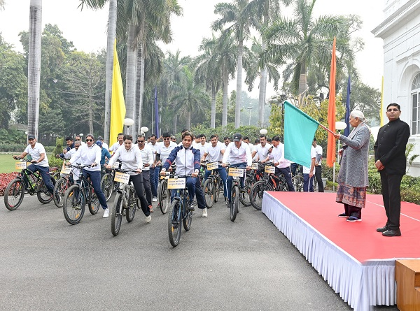 लखनऊ, 24 जनवरी (हि.स.)। उत्तर प्रदेश की राज्य स्थापना दिवस के अवसर पर जन भवन (राजभवन) परिसर से नशा मुक्ति जागरूकता विषयक एक साइकिल रैली का आयोजन किया गया। राज्यपाल आनंदी बेन पटेल ने शनिवार को हरी झंडी दिखाकर साइकिल रैला रवाना किया।