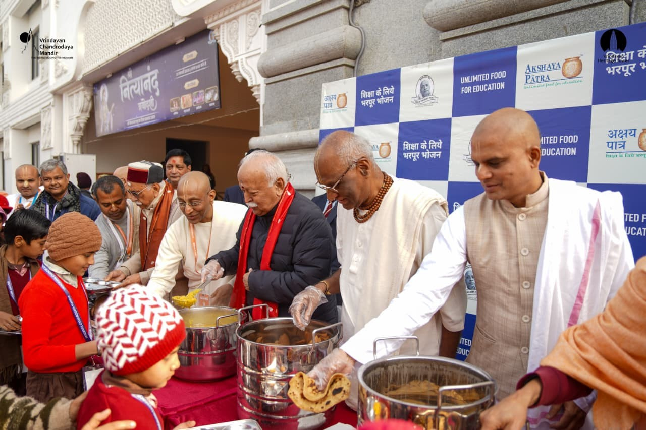 इस अवसर पर मोहन भागवत ने अक्षय पात्र फाउंडेशन द्वारा पोषित विद्यालय के छात्रों को प्रतीकात्मक रूप से मध्याह्न भोजन प्रसाद वितरित किया। उन्होंने बच्चों से संवाद करते हुए शिक्षा, संस्कार और सेवा के महत्व पर बल दिया तथा उनके उज्ज्वल भविष्य की कामना की।