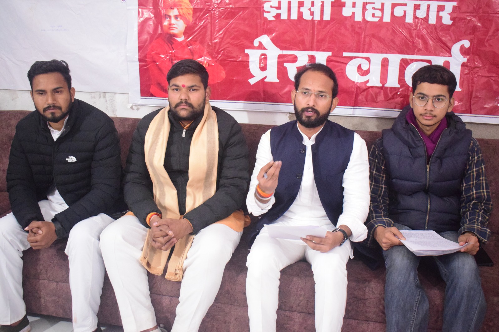 झांसी, 08 जनवरी (हि.स.)। झांसी पहुंचे अखिल भारतीय विद्यार्थी परिषद के प्रांत मंत्री दिनेश यादव ने कार्यालय पर आयोजित प्रेसवार्ता में बताया कि इस बार विद्यार्थी परिषद के आदर्श विवेकानंद जी की जयंती के अवसर 10 जनवरी से 23 जनवरी तक युवा संगम पखवाड़ा मनाया जाएगा। प्रान्त मंत्री ने प्रेस वार्ता में कहा कि अभाविप राष्ट्र, समाज और शिक्षा के मूल्यों की रक्षा के लिए समर्पित छात्र आंदोलन है। उन्होंने शिक्षा क्षेत्र में देशविरोधी विचारधाराओं के बढ़ते प्रभाव और छात्रों के अधिकारों की सुरक्षा पर जोर दिया।
