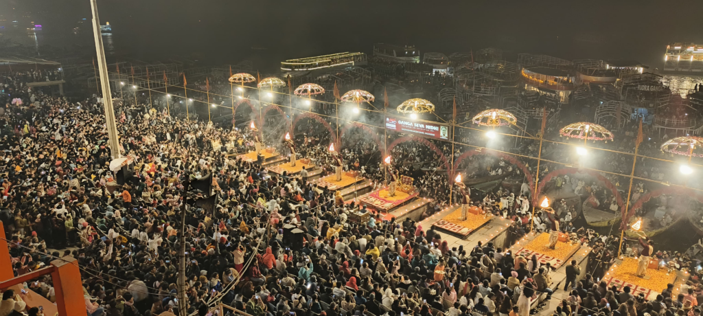 वाराणसी : साल के अंतिम दिन दशाश्वमेघ घाट पर गंगा आरती में उमड़ा आस्था का सैलाब